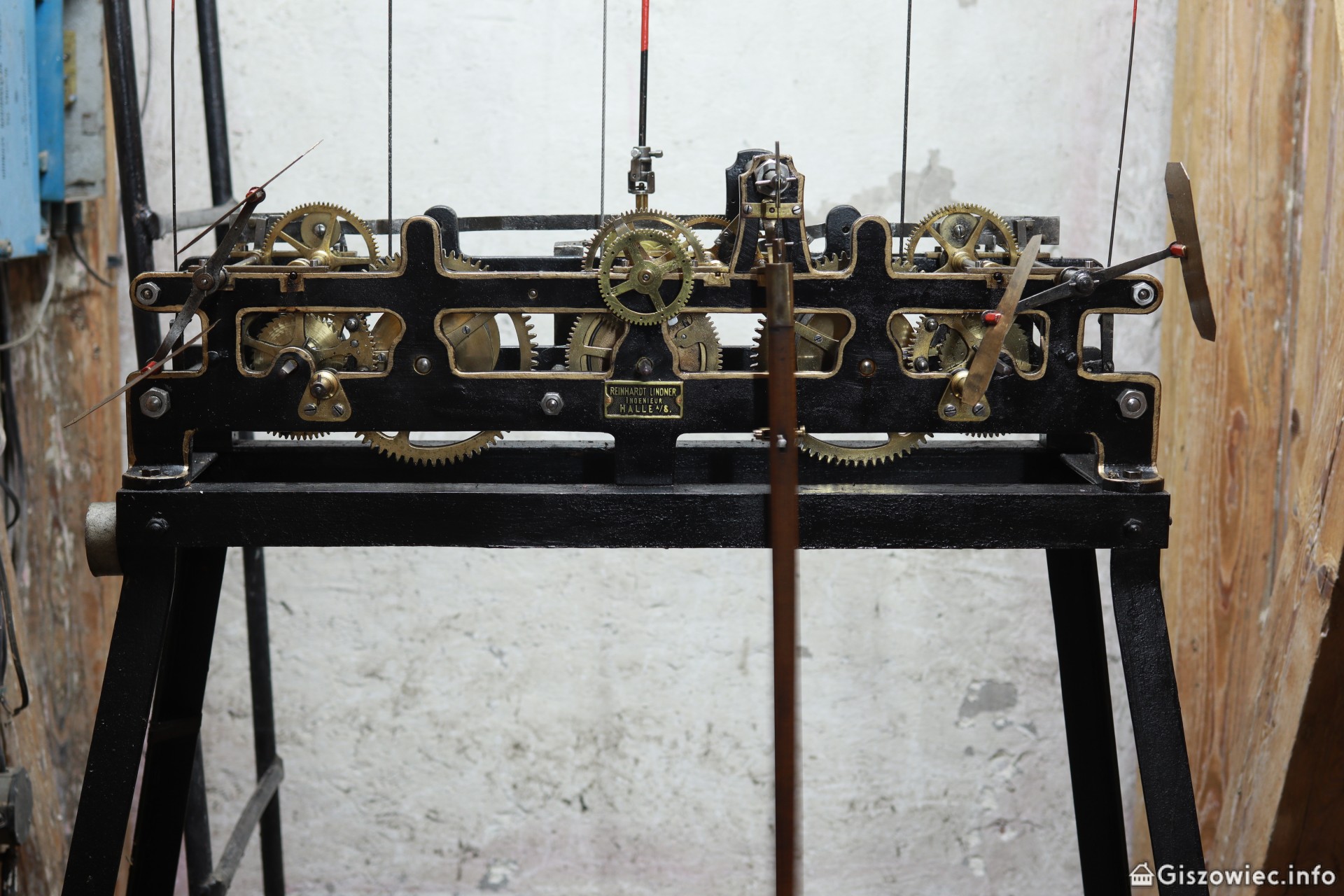 Całość uwieńczono niewielką wieżyczką z zegarem kwadransowym, zbudowanym przez firmę Reinhard Lindner z Halle an der Saale – tę samą, która wyposażyła w sprzęty giszowiecką pralnię. Zegar wprawiany jest w ruch za pomocą trzech obciążników i wymaga regularnego nakręcania, co około 3 dni. Umieszczone w wieżyczce trzy tarcze zostały wykonane z półprzezroczystego szkła, co umożliwiło podświetlenie ich od tyłu. Dodatkowo zegar sygnalizuje mieszkańcom Giszowca czas wybijając kwadranse oraz pełne godziny za pomocą dwóch gongów, umieszczonych na dachu. Mechanizm bicia wyposażony jest w dwa skrzydełkowe regulatory prędkości, wykorzystujące opór powietrza. W trakcie swojego ponad stuletniego działania zegar przechodził kilka renowacji. Pod koniec 2012 roku mechanizm został pieczołowicie odrestaurowany przez katowickich zegarmistrzów Adama Graczyka i Damiana Myśliwca, dzięki czemu pozostaje sprawny do dziś. O jego działanie dba obecnie pan Michał, konserwator przedszkola.